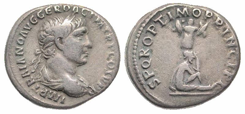 Lot 42-155. Trajan. A.D. 98-117. AR denarius. Rome mint, Struck A.D. 104-107.