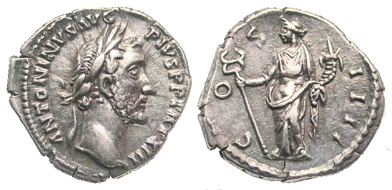 Lot 42-164. Antoninus Pius. A.D. 138-161. AR denarius. Rome mint, Struck A.D. 150.