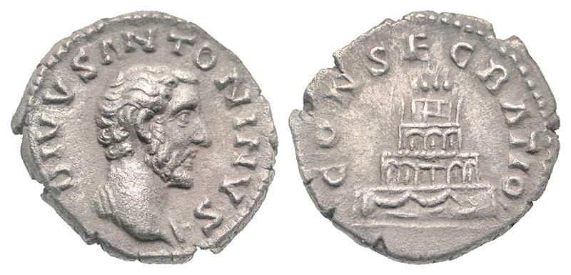 Lot 42-168. Divus Antoninus Pius. Died A.D. 161. AR denarius. Rome mint, Struck A.D. 161.