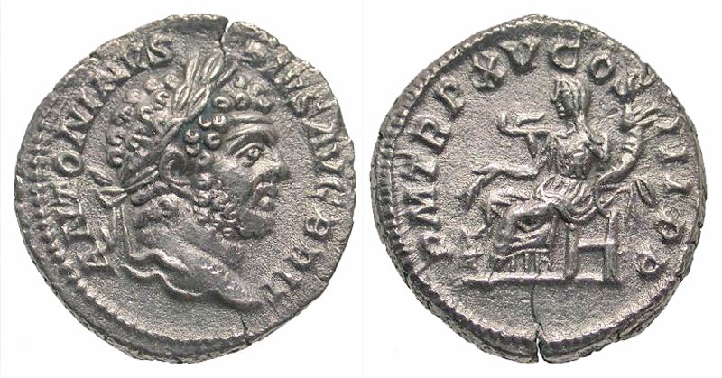 Lot 42-187. Caracalla. A.D. 198-217. AR denarius. Rome mint, Struck A.D. 214.