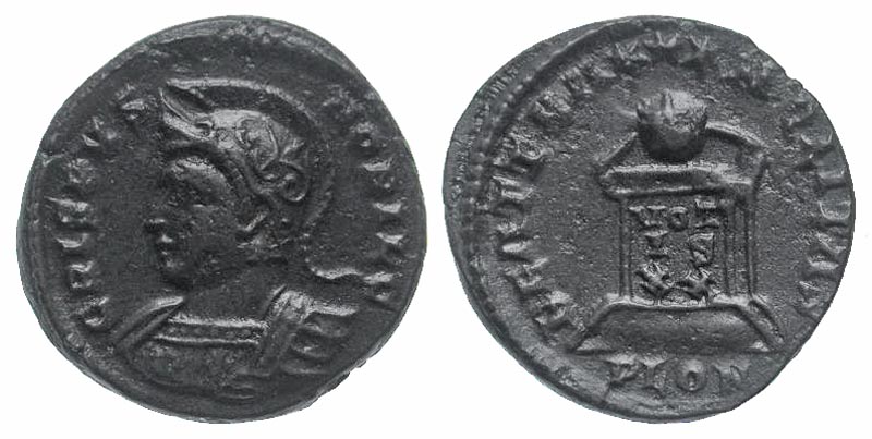 Lot 42-207. Crispus. Caesar, A.D. 317-326. AE follis. London mint, struck A.D. 323-4.