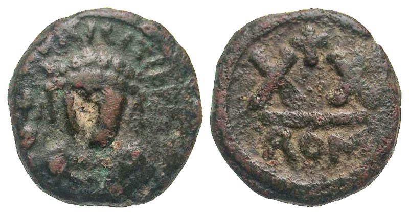 Hahn attributed Maurice Tiberius's Rome mint half folles to his Moneta Militarii Imitativa because the portrait is the same as that found on his pieces with the CON mint mark (Constantine in Numidia; SBV 576).