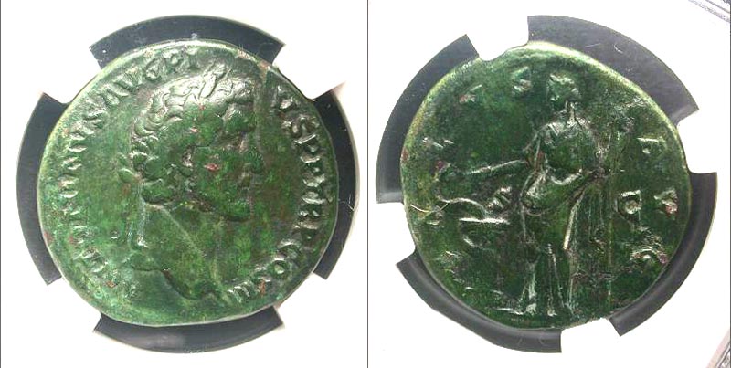 Lot 43-159. Antoninus Pius. A.D. 138-161. AE sestertius. Rome mint, struck A.D. 145-147.