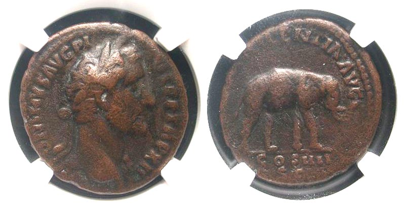 Lot 43-160. Antoninus Pius. A.D. 138-161. AE as. Rome mint, struck A.D. 149.