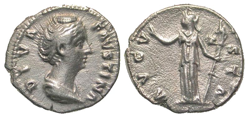Lot 43-162. Diva Faustina I. Died A.D. 140/1. AR denarius. Rome mint, struck A.D. 141-146.