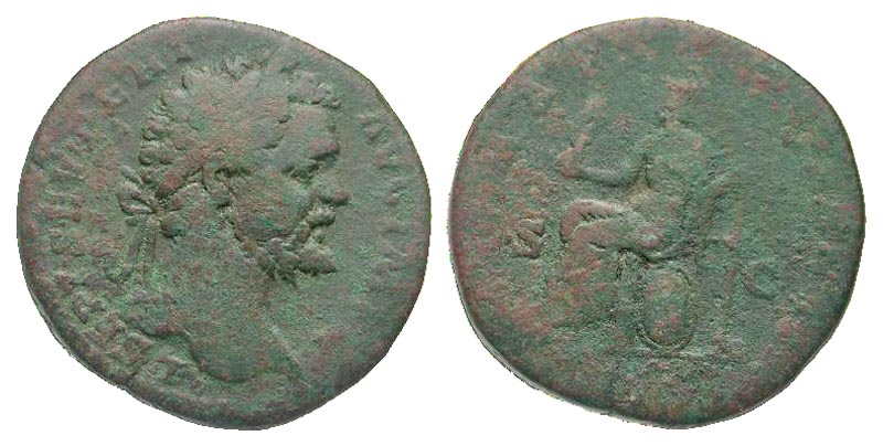 Lot 43-174. Septimius Severus. A.D. 193-211. AE sestertius. Rome mint, struck A.D. 195. Scarce.