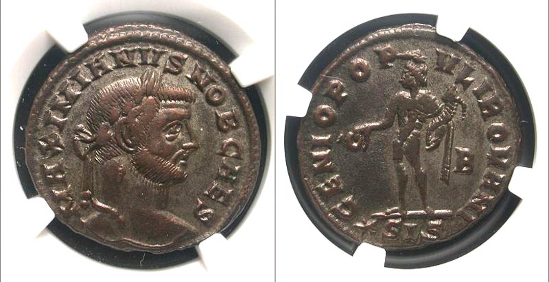 Lot 43-201. Galerius. As Caesar, A.D. 293-305. AE follis. Siscia mint, struck A.D. 295.
