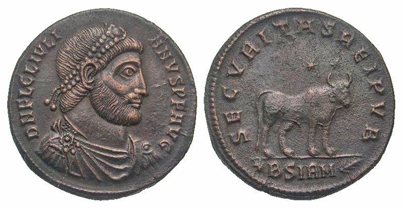 Lot 43-222. Julian II. A.D. 360-363. AE follis. Sirmium mint, struck A.D. 361-363.