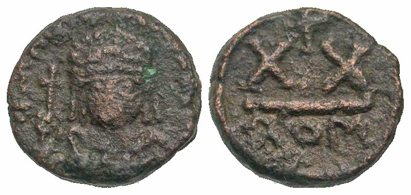 Hahn attributed Maurice Tiberius's Rome mint half folles to his Moneta Militarii Imitativa because the portrait is the same as that found on his pieces with the CON mint mark (Constantine in Numidia; SBV 576).