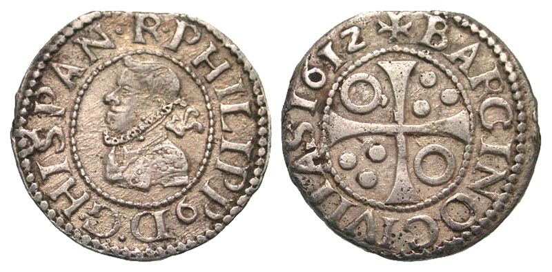 Lot 43-276. Spain, Aragon. Philip III. 1598-1621. AR 1/2 real. Barcelona mint, 1612.
