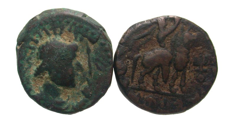 [Eastern Cultures]. Lot of 2 Vima Takto (Soter Megas) Tetradrachms. Radiate and diademed bust right, holding scepter; tamgha behind / Vima Takto on horseback right, holding axe; tamgha to lower right. Senior B17.1T; MACW 2933-2936. aVF.