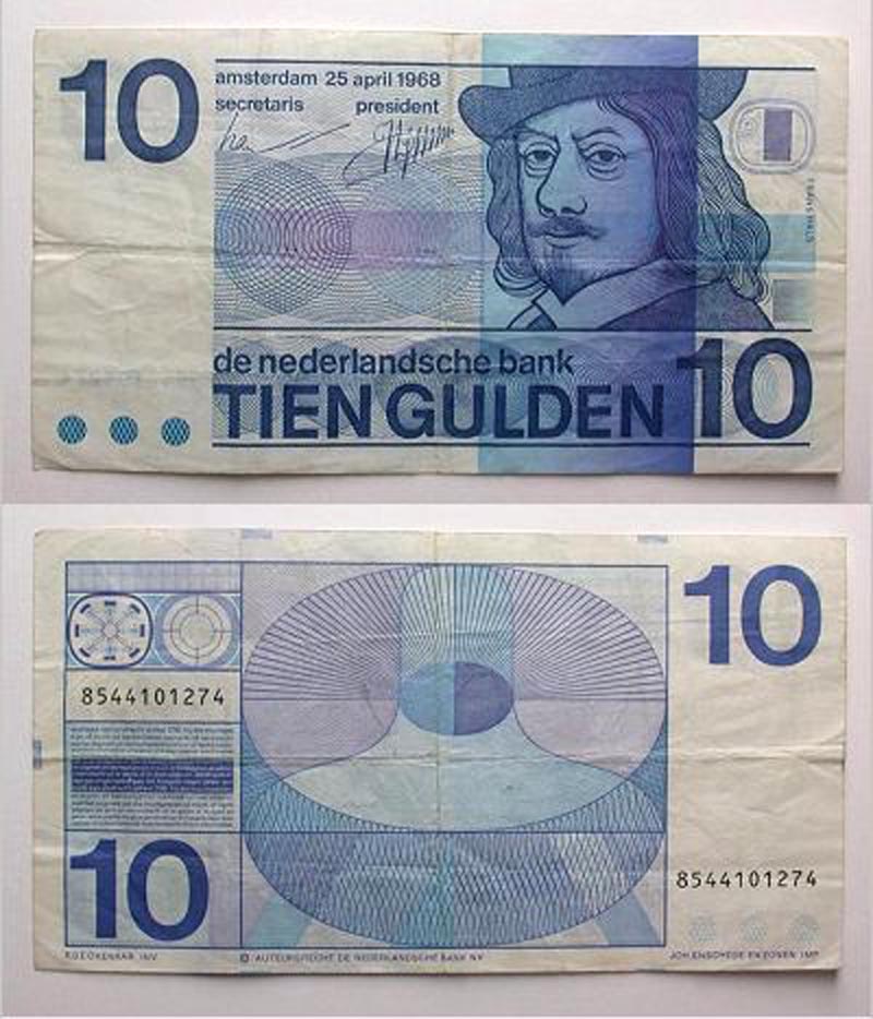 The Netherlands, 1968, 10 Gulden. Frans Hals / Circular patterns. Pick 91. VF.