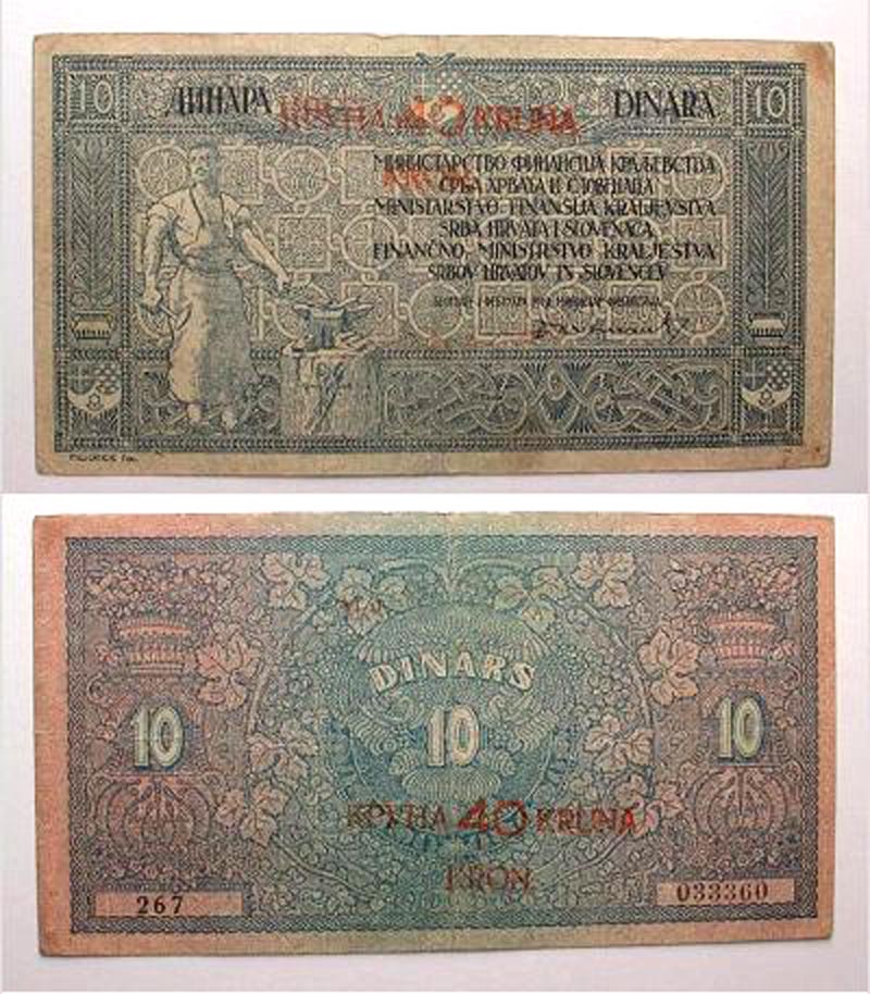 Lot 43-301. Yugoslavia, 1919, 10 Dinara. Fine.