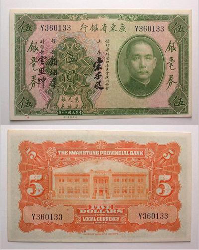 Lot 43-310. China, Kwantung Provincial Bank, 1931, 5 Dollars. Unc.