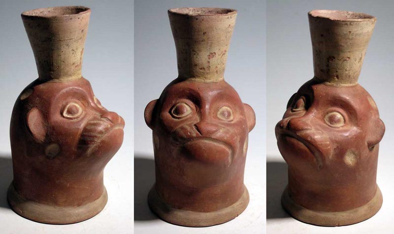 Moche Sea Lion from Peru, ca. 400 - 700 AD. An adorable Moche Sea Lion head from Peru, ca. 400 - 700 AD. It is 7-3/8 high and depicts the nicely detailed animal with an almost comical expression on his face. Good paint and mineral deposits. Ex Gallatin estate. Value range: $500 - $700.
