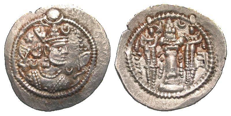 Lot 44-056. Sasanian Kingdom. Peroz I. A.D. 457/9-484. AR drachm. AW (Ahwaz) mint.