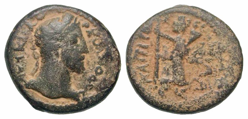 Syria, Decapolis. Capitolias. Commodus. A.D. 177-192. AE 24 (23.9 mm, 9.67 g, 5 h). Dated CY 93 ( A.D. 189/90). AYT K M AYP KOMOΔOC, laureate bust right / KAΠITωΛIEωN I A A; Γ Ч, Tyche standing left, resting on scepter and holding cornucopia. Spijkerman 14; Sofaer 7; SNG ANS -. Fine, thick red patina. Scarce.