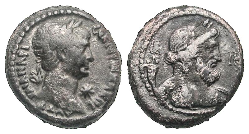Lot 44-107. Egypt, Alexandria. Trajan. A.D. 98-117. BI tetradrachm. Dated year 18=A.D. 114/5. Scarce. Ex Nageli Collection.