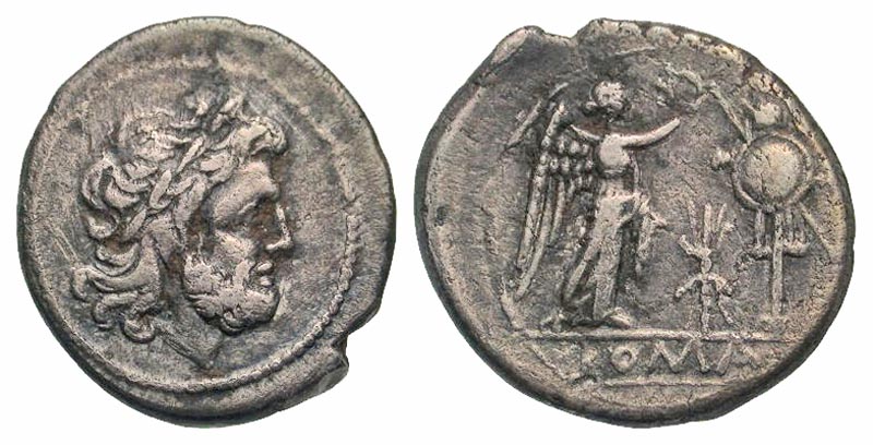 Lot 44-118. Anonymous. after 211 B.C. AR victoriatus. Rome mint. Ex RBW collection (not in previous sales).
