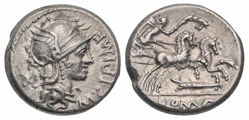 Lot 44-130. M. Cipius M.f.. 115-114 B.C. AR denarius. Ex Spink with envelope and ticket.
