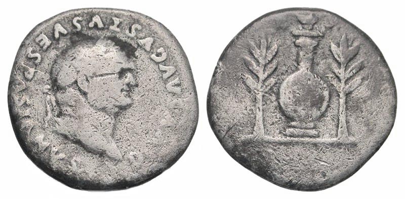 Lot 44-143. Divus Vespasian. Died A.D. 79. AR denarius. Rome mint, Sruck A.D. 80-81.