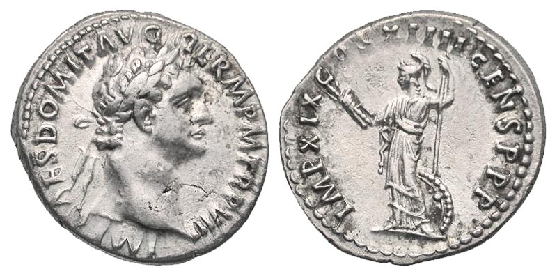 Lot 44-145. Domitian. A.D. 81-96. AR denarius. Rome mint, struck A.D. 88-89. Ex Elwood Rafn collection.