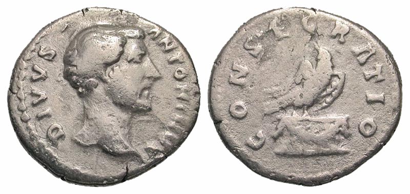 Lot 44-152. Divus Antoninus Pius. Died A.D. 161. AR denarius. Rome mint, struck A.D. 161.