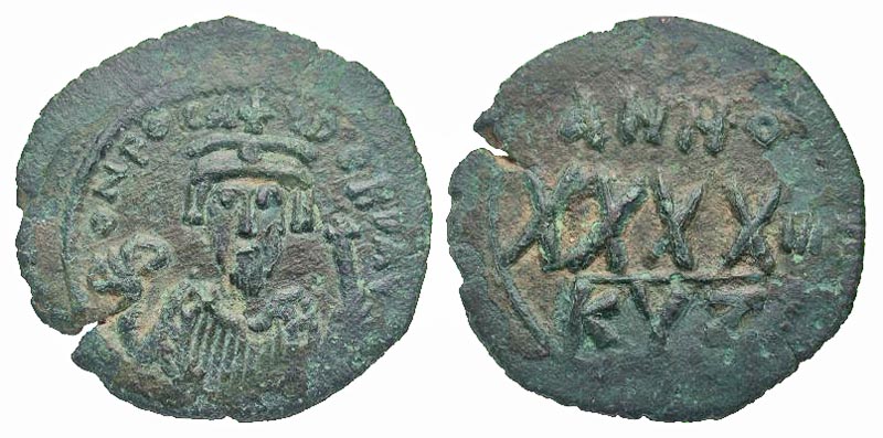 Lot 44-214. Phocas. 602-610. AE follis. Cyzicus mint, Dated RY 3 (AD 604/5). Rare variety.