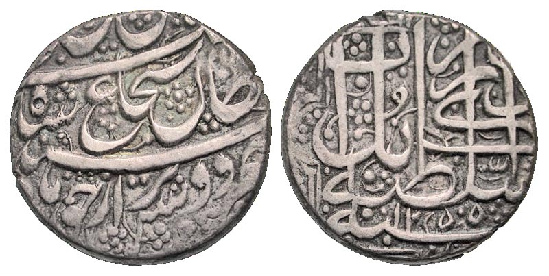 Lot 44-243. Afghanistan, Durrani Shahs. Shah Shuja' al Mulk. Fifth reign, 1839-1842. AR rupee. Kabul mint, dated A.H. 1255. Very Rare.
