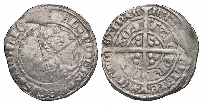 Lot 44-246. Anglo-Gallic. Edward the Black Prince. as Prince of Aquitaine, 1362-1372. AR demi gros. First issue. Limoges mint. Rare.
