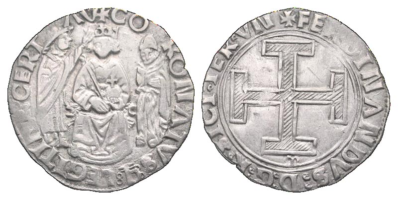 Lot 44-255. Italy, Kingdom of Naples. Ferdinand I (Don Ferrante) . 1458-1494. AR coronato. Second coinage, class I. Struck 1462-1472.