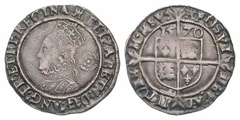 Lot 44-267. British, House of Tudor. Elizabeth I. 1558-1603. AR threepence. Third-fourth issue. London mint; im: castle, struck 1570.