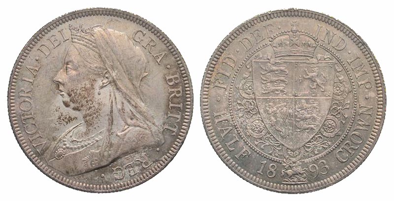 Lot 44-271. British, House of Hanover. Victoria. 1837-1901. AR half crown. Old bust. London mint, 1893. Ex D. F. Adler collection.