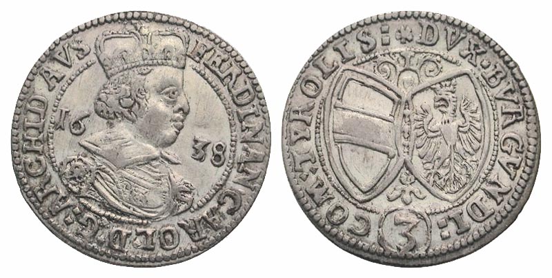 Lot 44-275. Austria. Ferdinand Charles. as Archduke, 1632-1662. AR 3 kreuzer. Hall mint.