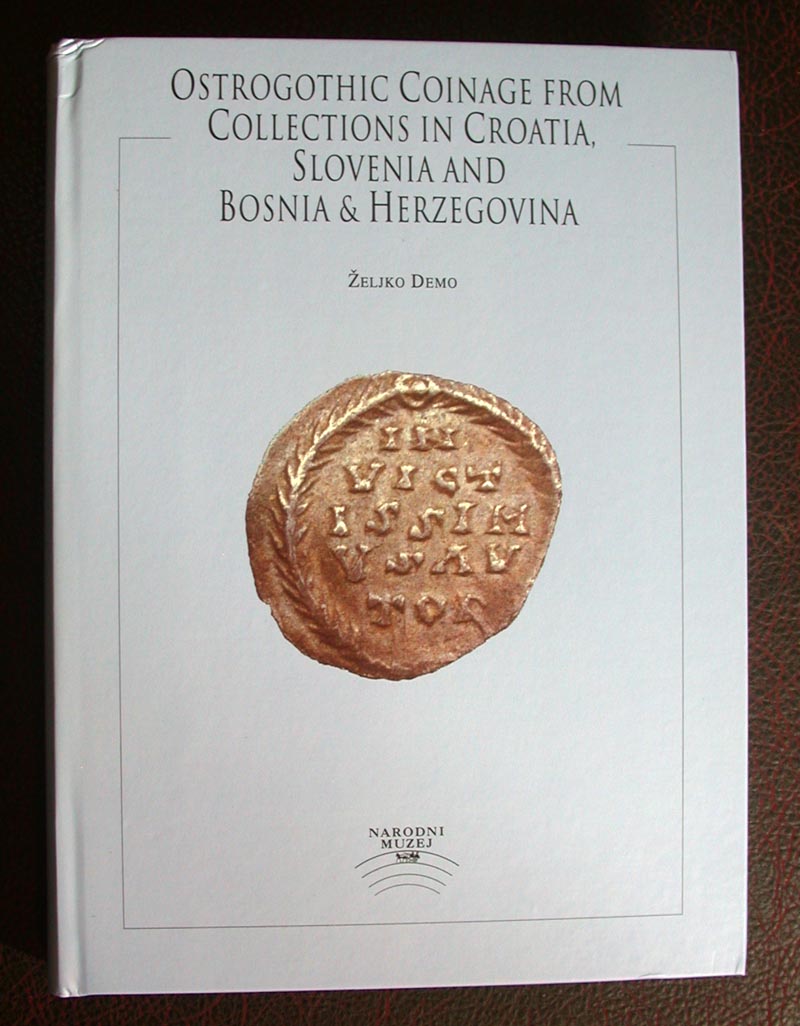 Ostrogothic Coinage from Collections in Croatia, Slovenia and Bosnia & Herzegovina; Zeljko Demo. Ljubljana 1994, 324 pagesContents:I. Introduction (pp. 1-40) - II. Ostrogothic coinage in museums and other collections (pp. 41 - 73) - III. Catalogue of the coins (pp. 75 - 123) - IV. Notes on the coins (pp. 125 - 160) - V. Identical dies (pp. 161 - 166) - VI. Finds and sites (pp. 167 - 190) - VII. Survey of the material (pp. 191 - 206), Appendices (pp. 207 - 263) - Collectors, donors and dealers (pp. 265 - 282) - Bibliography (pp. 282 - 287) - Indexes ( pp. 299 - 323)..