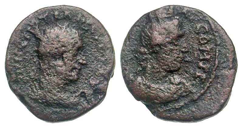 JUDAEA, Aelia Capitolina (Jerusalem). Trajan Decius, 249-251 AD. AE20 (6.06 gm). Draped bust / Turretted bust of Tyche, ...A..COM P F. RPC.4212v. Fine, dark brown patina.