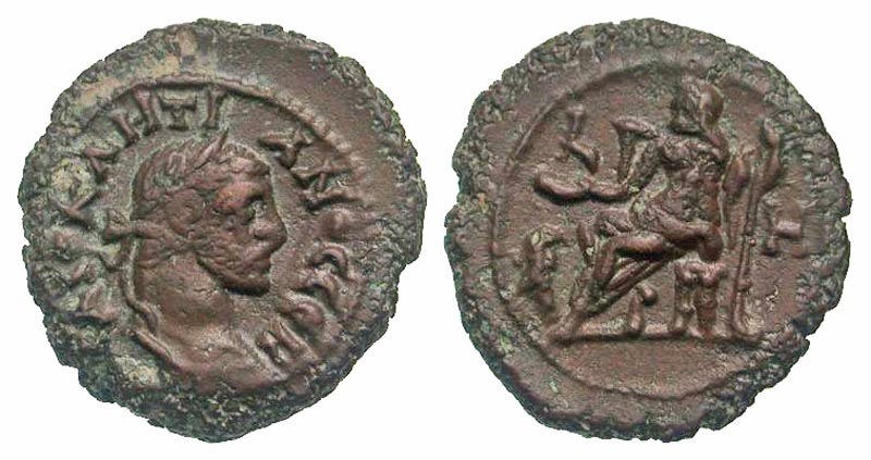 ROMAN EGYPT. Diocletian, 295-305 AD. Potin Tetradrachm (6.07 gm), yr. 8. Laureate cuirassed bust / Zeus enthroned with Nike and sceptre, eagle at feet. Köln.3255. VF+, brown patina. ex. Doswell collection.