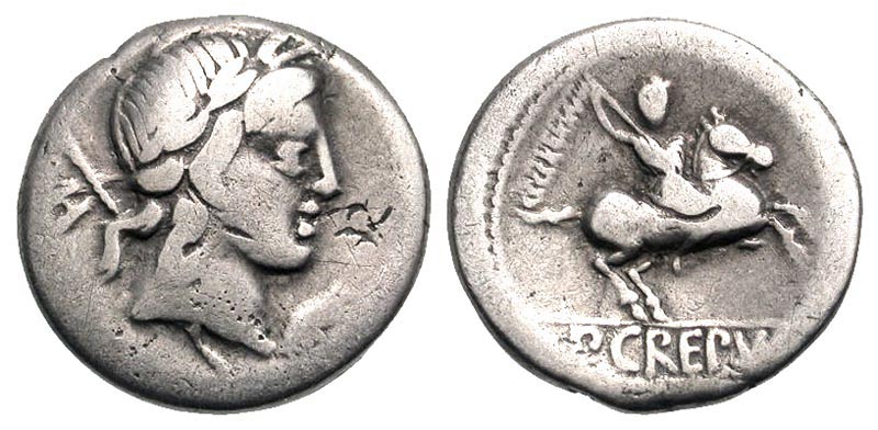 Lot 45-173. ROMAN REPUBLIC. P. Crepusius, 82 BC. AR Denarius