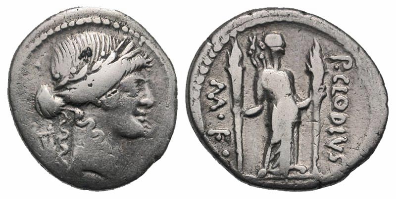 Lot 45-179. ROMAN REPUBLIC. P. Clodius M.f.Turrinus, 42 BC. AR Denarius
