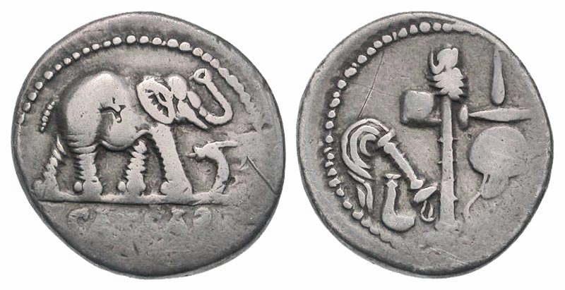 Lot 45-180. JULIUS CAESAR, Died March 15, 44BC. AR Denarius