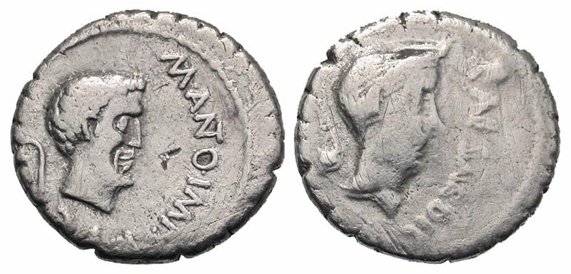 Lot 45-181. JULIUS CAESAR and MARC ANTONY, 43 BC. AR Denarius. Rare.