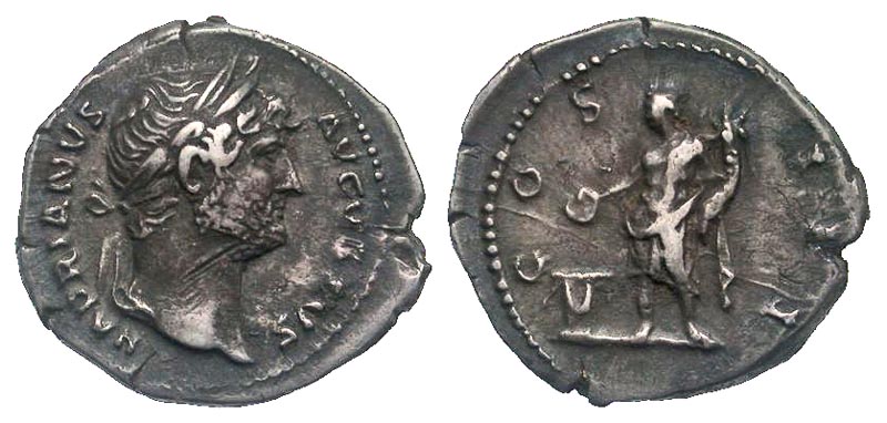 Lot 46-137. Hadrian. A.D. 117-138. AR denarius. Rome mint, struck A.D. 125-128. Scarce obverse variety.