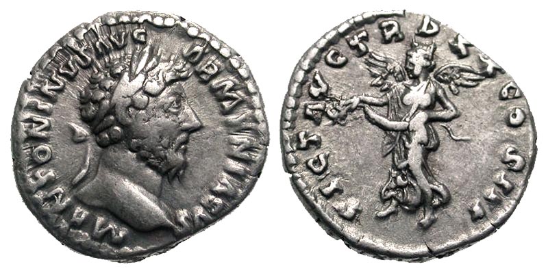 Lot 46-151. Marcus Aurelius. A.D. 161-180. AR denarius. Rome mint, struck A.D. 165-166. Scarce.
