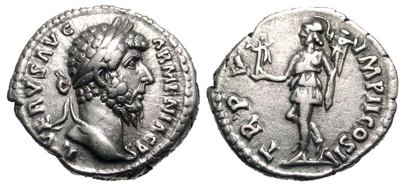 Lot 46-152. Lucius Verus. A.D. 161-169. AR denarius. Rome mint, struck A.D. 164-165.