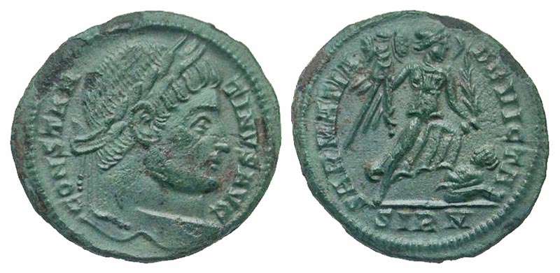 Lot 46-208. Constantine I. A.D. 307/10-337. AE reduced follis. Sirmium mint, struck A.D. 324-325.