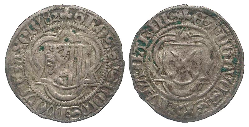 Lot 46-253. German States, Saxony. Ernst and Albrecht. 1482-1485. AR 1/2 Schwertgroschen. Zwickau/Schneeberg mint, 1482.