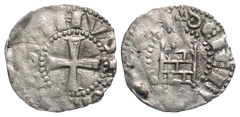 Crusader States, Latin Kingdom of Jerusalem. Baldwin III. 1142-1163. BI denier (17.5 mm, 0.78 g, 1 h). Crude style 'rough' series. BALdVINVS RЄX, cross pattée; straight X with annulet ends, B ends touching, elongated / + dЄ IЄRVSALЄM, Tower of David. Metcalf lettering series 3c, 153; CCS 10. VF, areas of flatness.