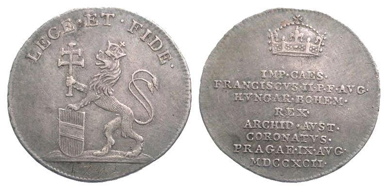 Lot 46-293. Bohemia, Holy Roman Empire. Franz II. 1792-1806. AR jeton. Coronation issue. Prague mint, Dated 1792.