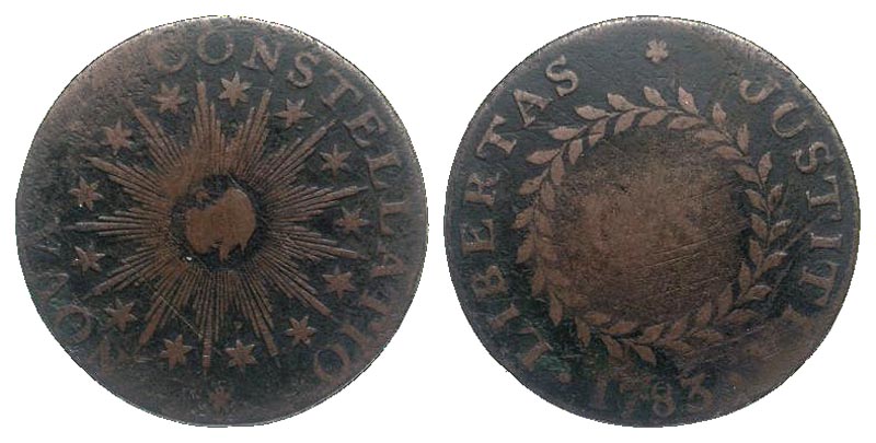 Lot 46-300. Colonial. 1783. Nova Constellation Copper. Struck in Birmingham, England, 1783. Scarce.