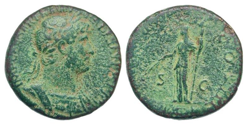 Lot 47-130. Hadrian. A.D. 117-138. AE sestertius. Rome mint, struck A.D. 120-122.